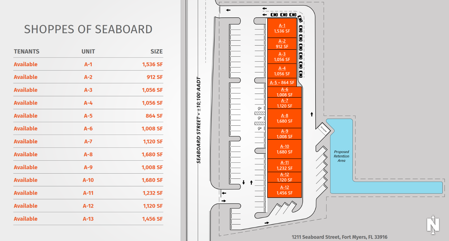 Shoppes of Seaboard is a future retail development located in the heart of Fort Myers, Florida. The center will feature units ranging up to 15,728 square feet in size including drive-thru space. Over 1,000 residential units are pending permit approval within a one-mile radius of Shoppes of Seaboard